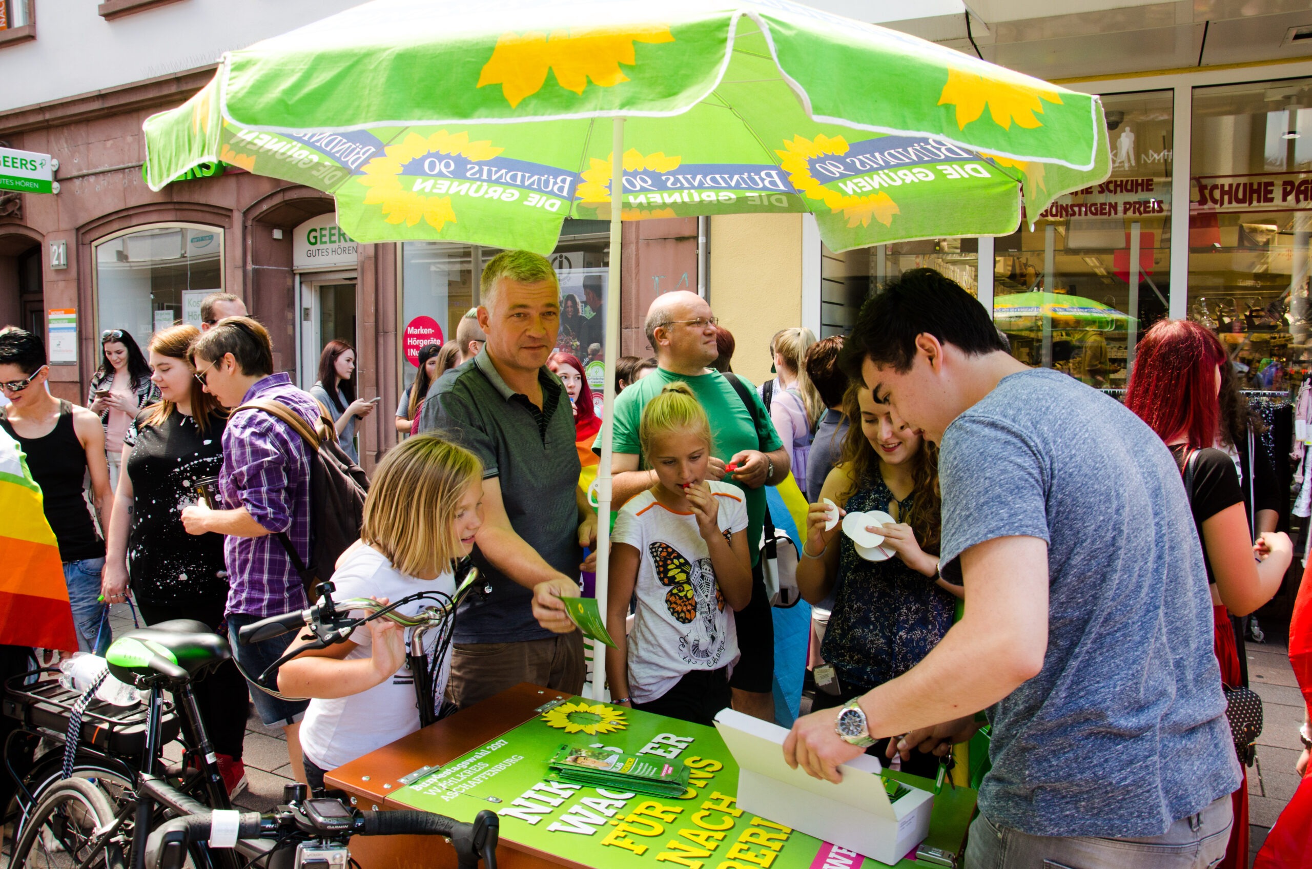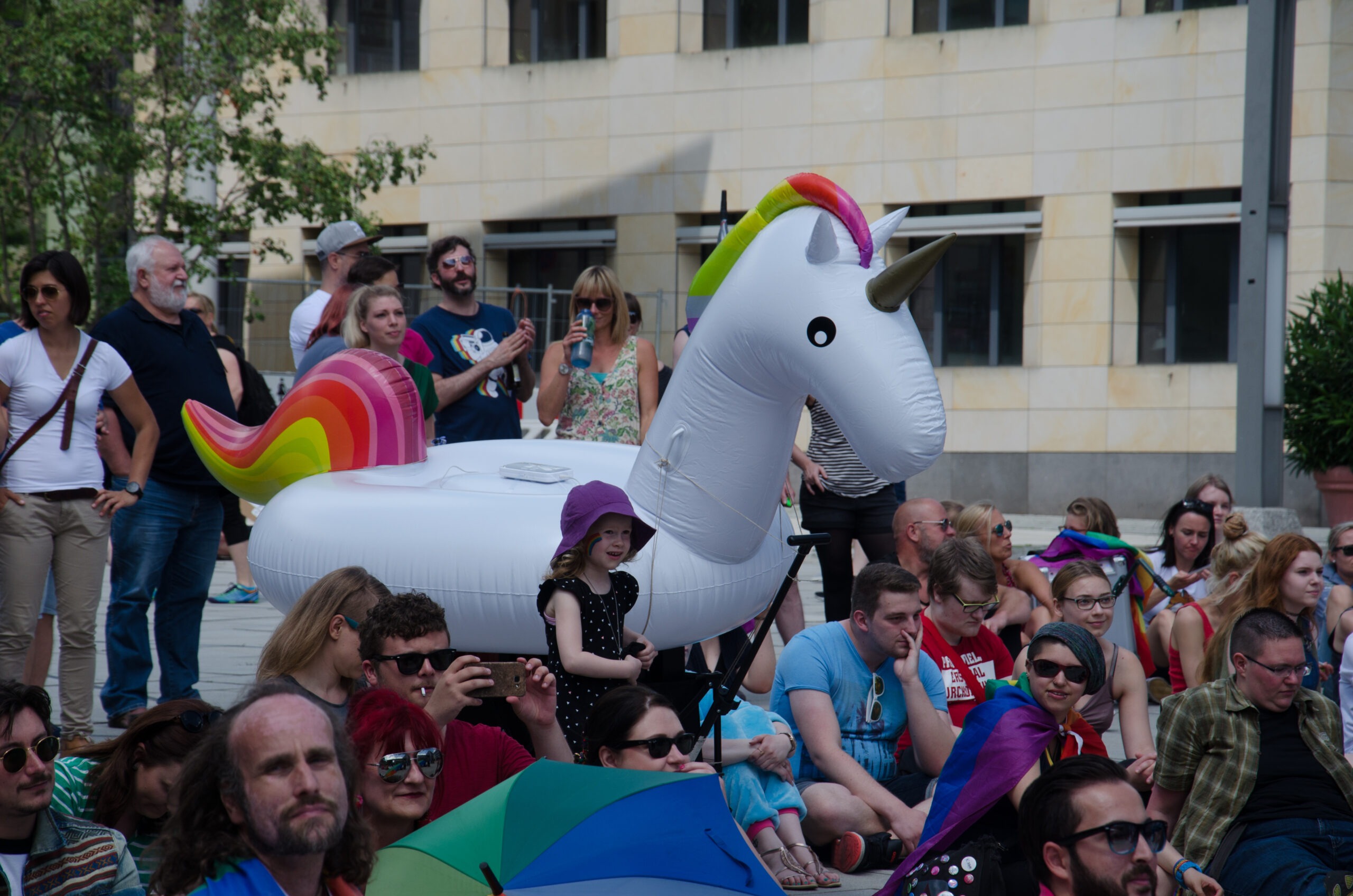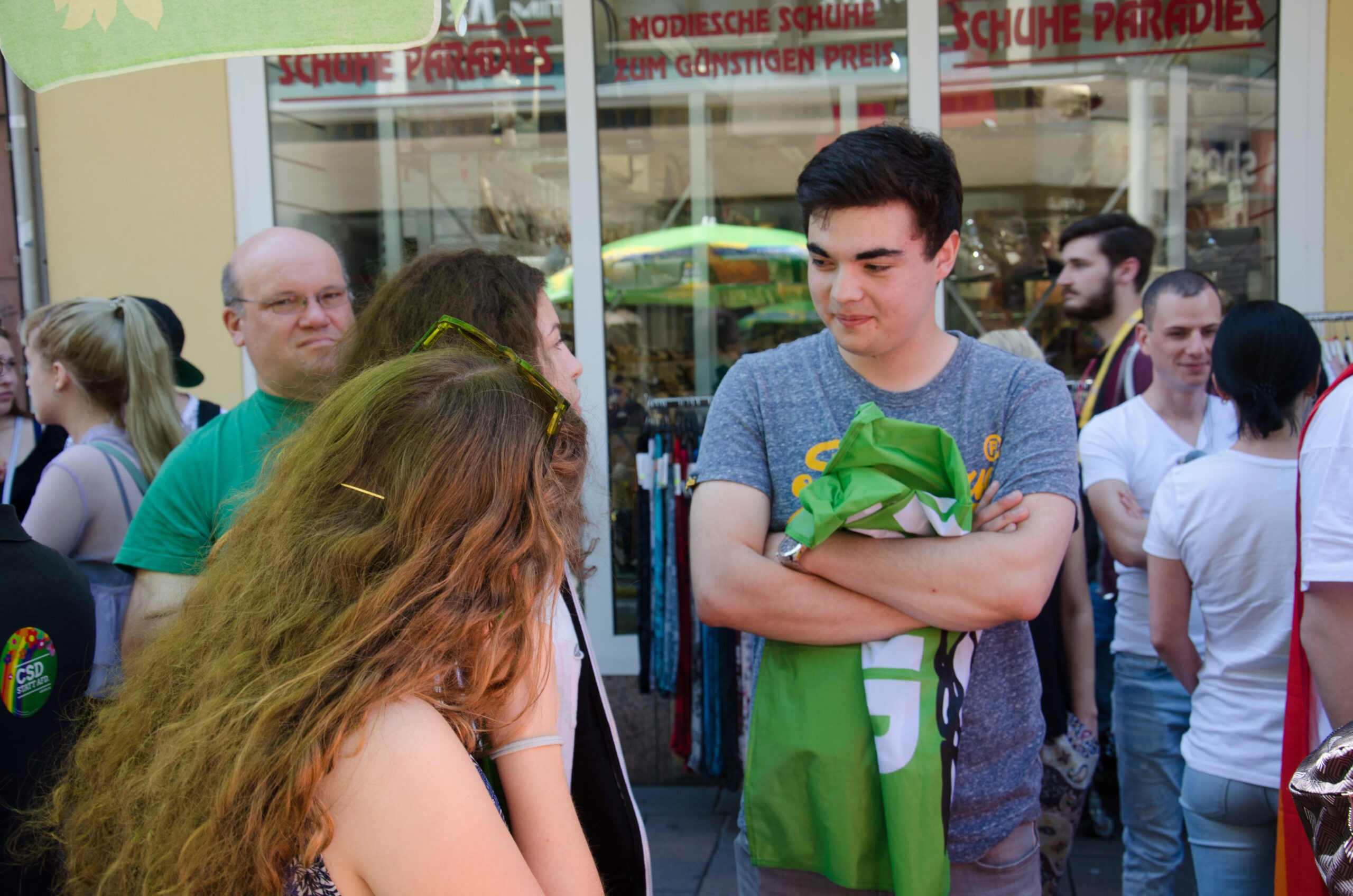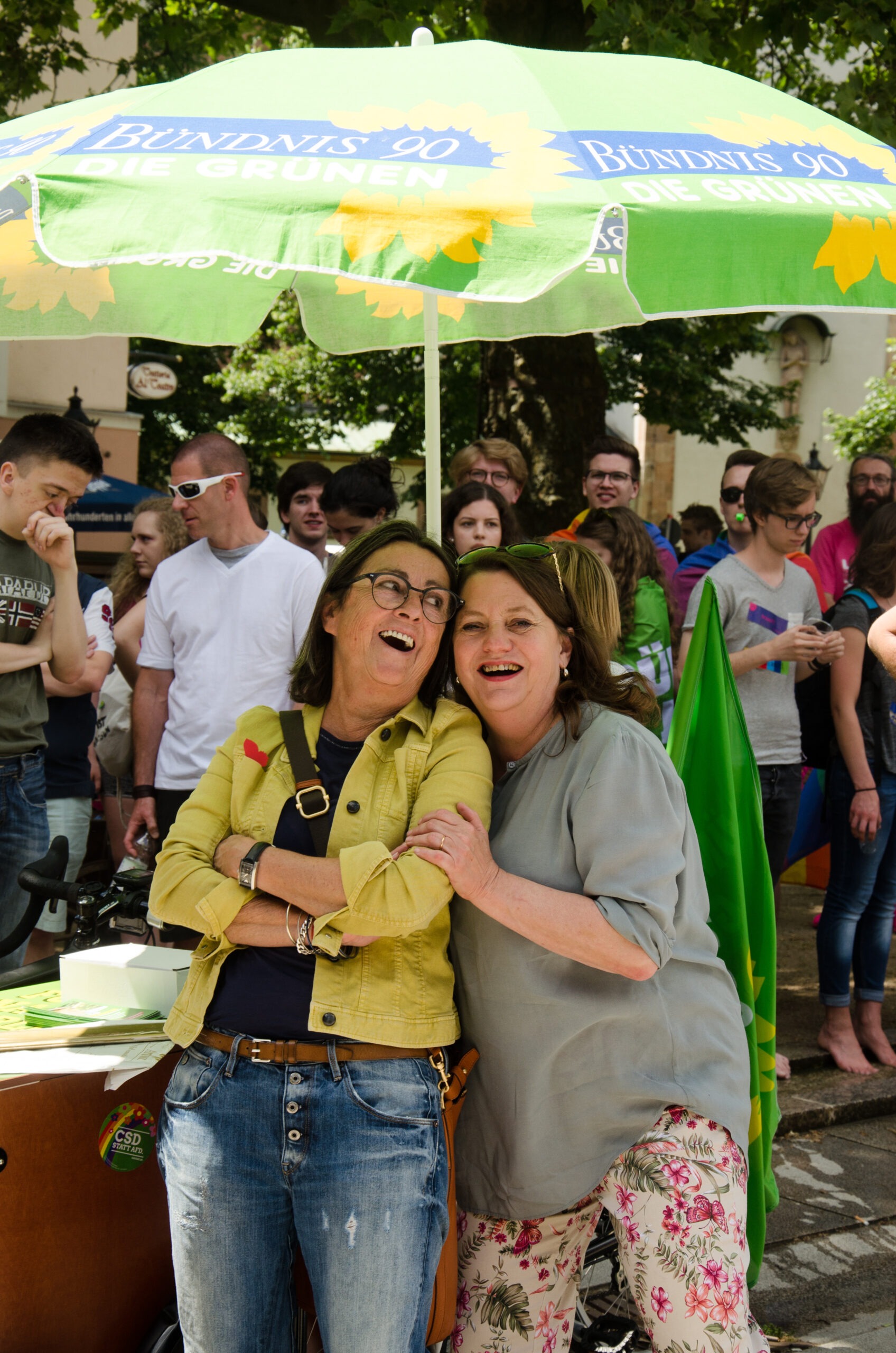 Unsere Grüne Landesvorsitzende Sigi Hagl hielt auf dem Theaterplatz eine starke Rede für die Ehe für alle! Schon heute hätten wir die Mehrheit im Bundestag, die SPD könnte mit Grünen und Linken dafür sorgen, dass die Politik der Liebe statt Grenzen den Weg frei macht zur freien Liebe. Liebe ist persönlich und privat, nicht politisch. Alle sollen lieben dürfen, wen sie wollen, ohne mit Nachteilen oder Anfeindungen rechnen zu müssen. Ich denke, wir haben als Teil des CSD auch dieses Jahr wieder gezeigt, wie wichtig uns die Gleichberechtigung aller Geschlechter, aller Liebender und Menschen jeder sexuellen Orientierung ist! Gemeinsam waren wir an diesem schönen Tag Vielfalt und Freiheit. Erst während des Umzuges durch die Stadt und dann an unserem Infostand im JUKUZ-Hof beim anschließenden CSD-Fest. Mit unseren Aufklebern „CSD statt AfD“ haben wir viele Menschen angesprochen, die mit uns einer Meinung waren: Statt Rechtspopulismus und Homophobie wollen wir eine offene und tolerante Gesellschaft. Und für die haben wir an diesem Tag gefeiert und werden das restliche Jahr in unserer politischen Arbeit weiter dafür kämpfen!