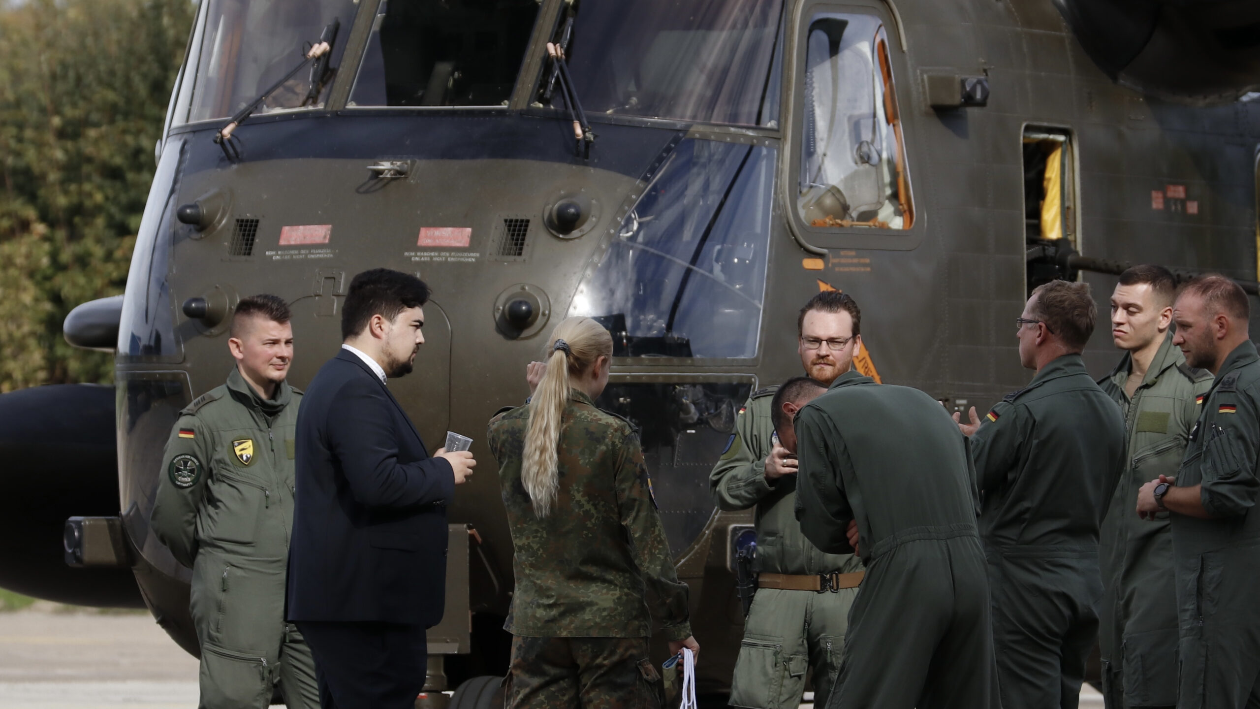 Zunächst durften die Teilnehmenden beim Flug von Berlin nach Nörvenich erleben, wie die Abfangrotte Nörvenich mit zwei Eurofightern ein Passagierflugzeug abfangen würde, sollte es sich ohne Genehmigung im deutschen Luftraum bewegen. Begleitet von den Eurofightern landete die Maschine in Nörvenich, um zunächst vom Inspekteur der Luftwaffe Ingo Gerhartz in die derzeitigen Herausforderungen eingeführt zu werden. In einer statischen Vorstellung konnten Flugzeuge, Drohnen, Hubschrauber und Luftabwehr-Panzer besichtigt werden. Dabei bot sich die Möglichkeit, mit Soldat*innen aller Dienstgrade ins Gespräch zu kommen.